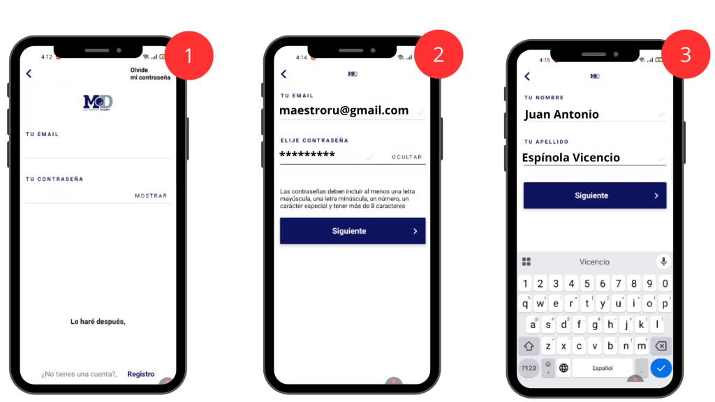 3- Ingresa tu nombre y apellidos pulsa el botón “Siguiente”.