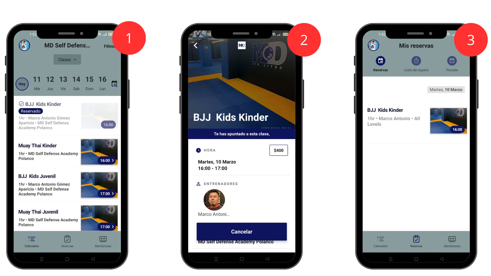 Una vez reservado tu lugar en la clase, podrás consultar las reservaciones que tienes registradas.