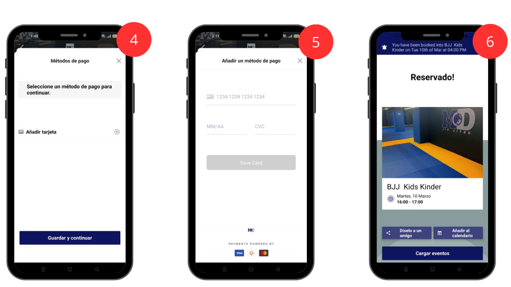 3- Pulsa el botón “Reservar” y se mostrará la opción de métodos de pago para completar la reservación.